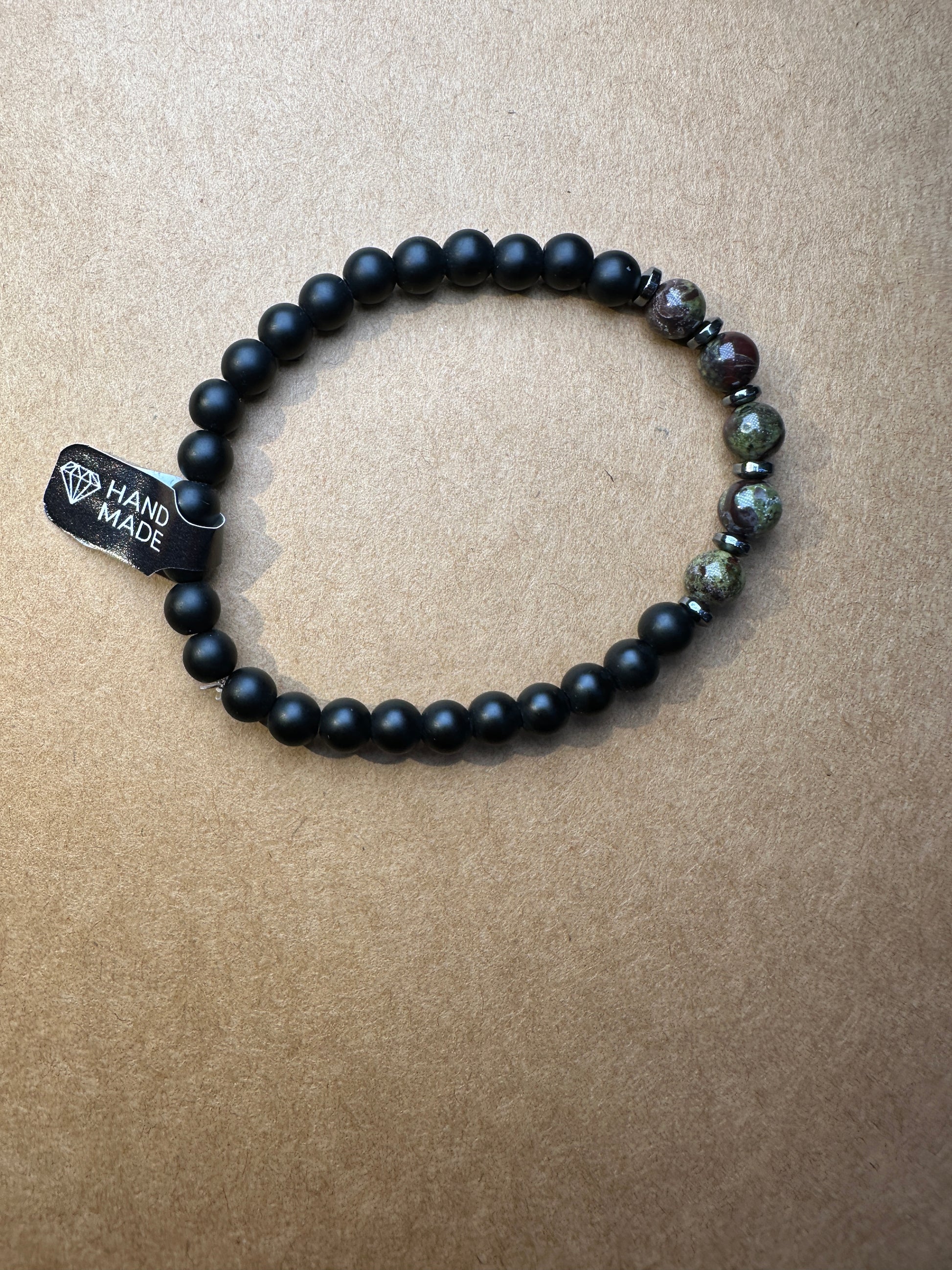 Bransoletka Jaspis Dragon Blood (smocza krew) oraz Onyksem i Hematytem