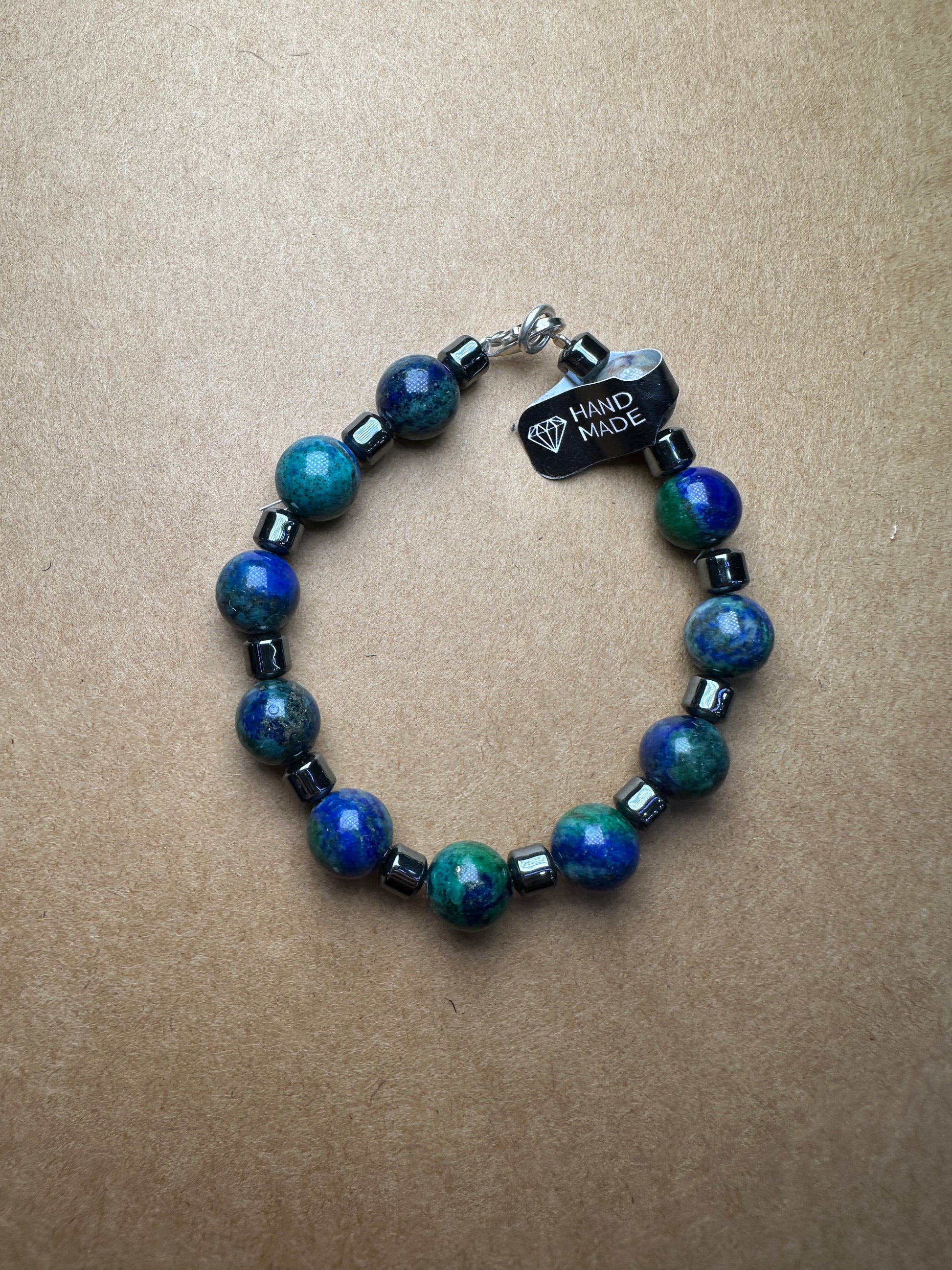 Bransoletka srebrna 925 z Azurytem i Malachitem oraz Hematytem