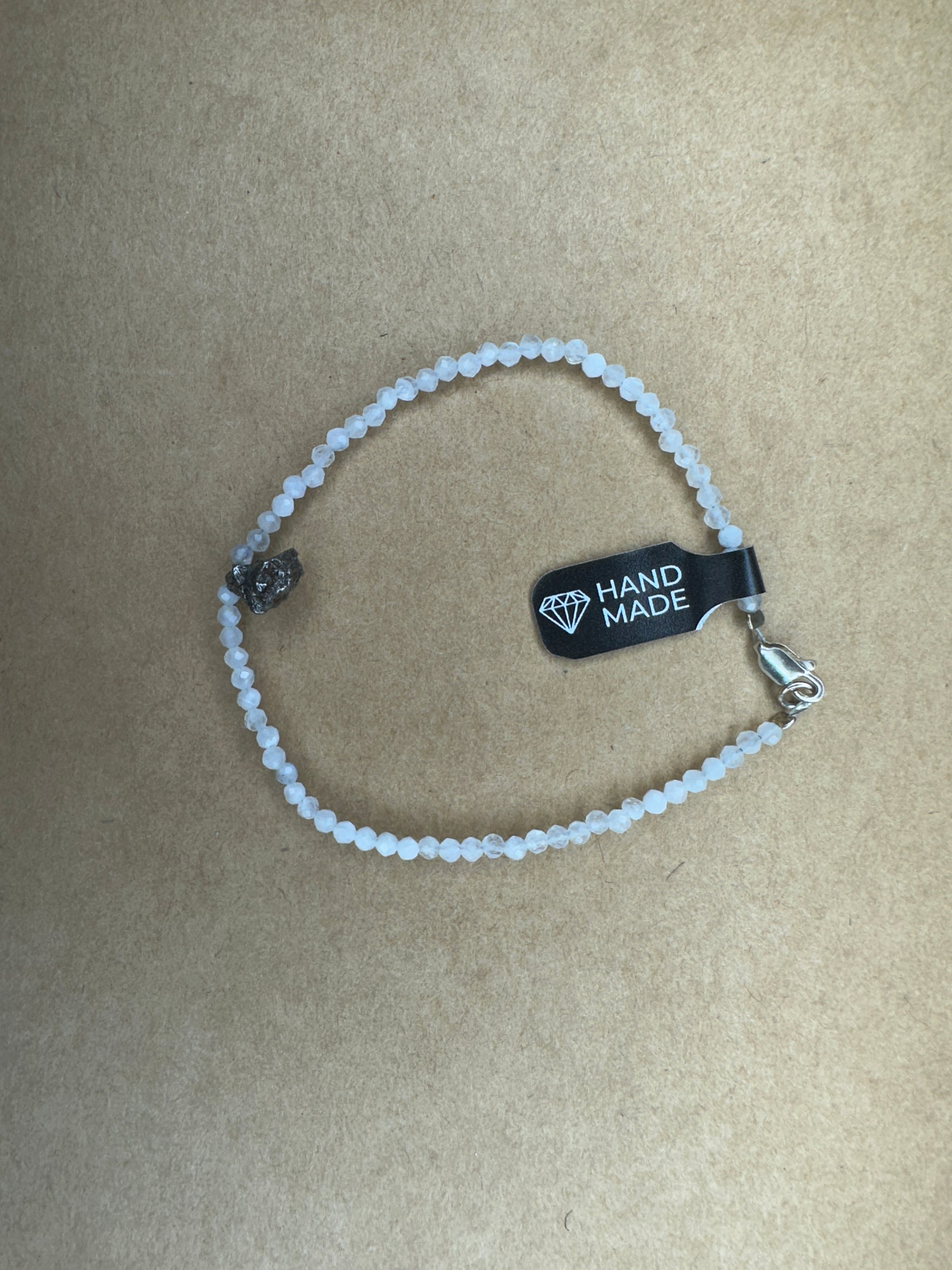 Bransoletka Srebrna 925 z Kamienia Księżycowego z Meteorytem Campo del Cielo