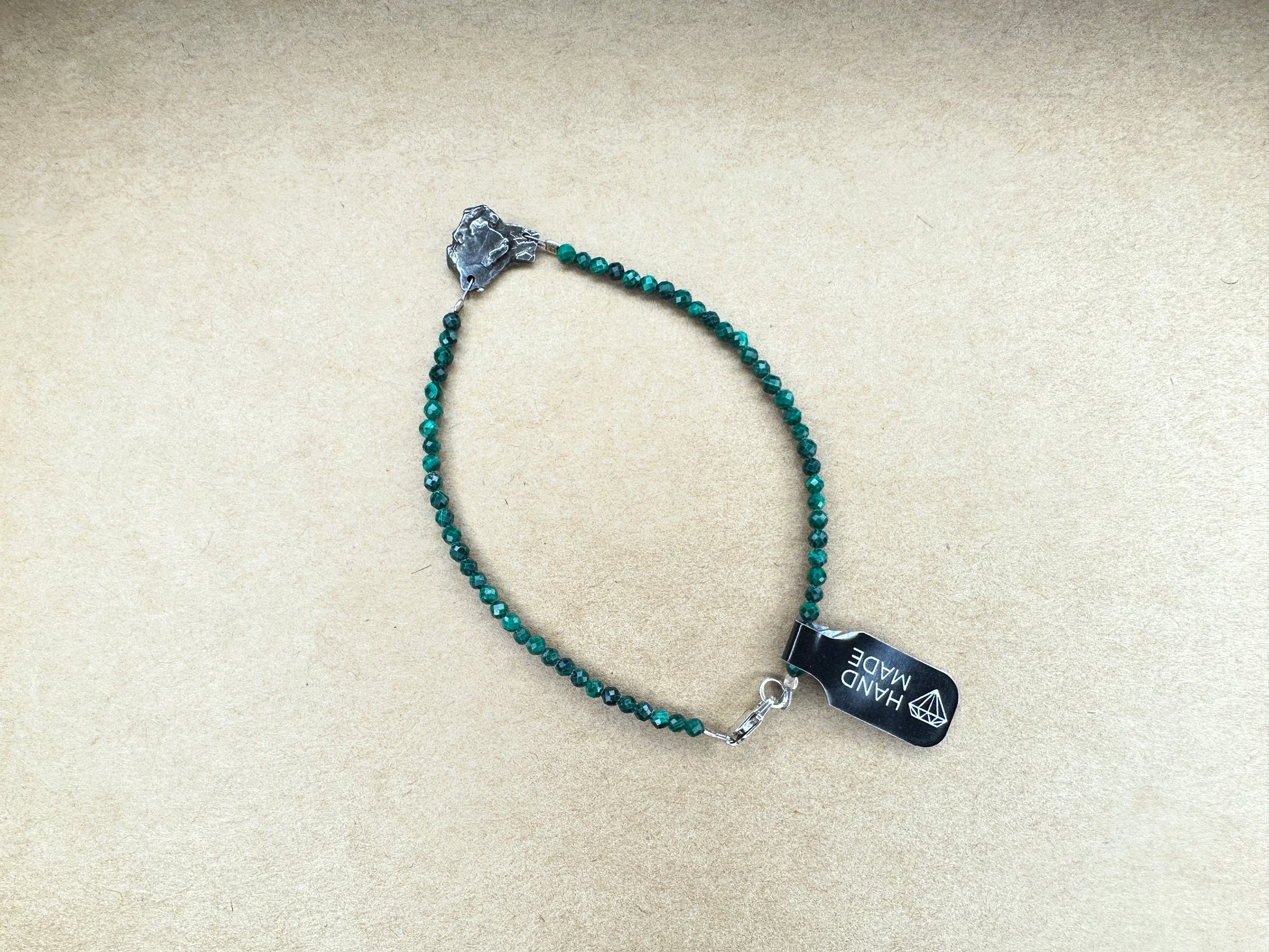 Bransoletka Srebrna 925 z Malachitu z Meteorytem Campo del Cielo