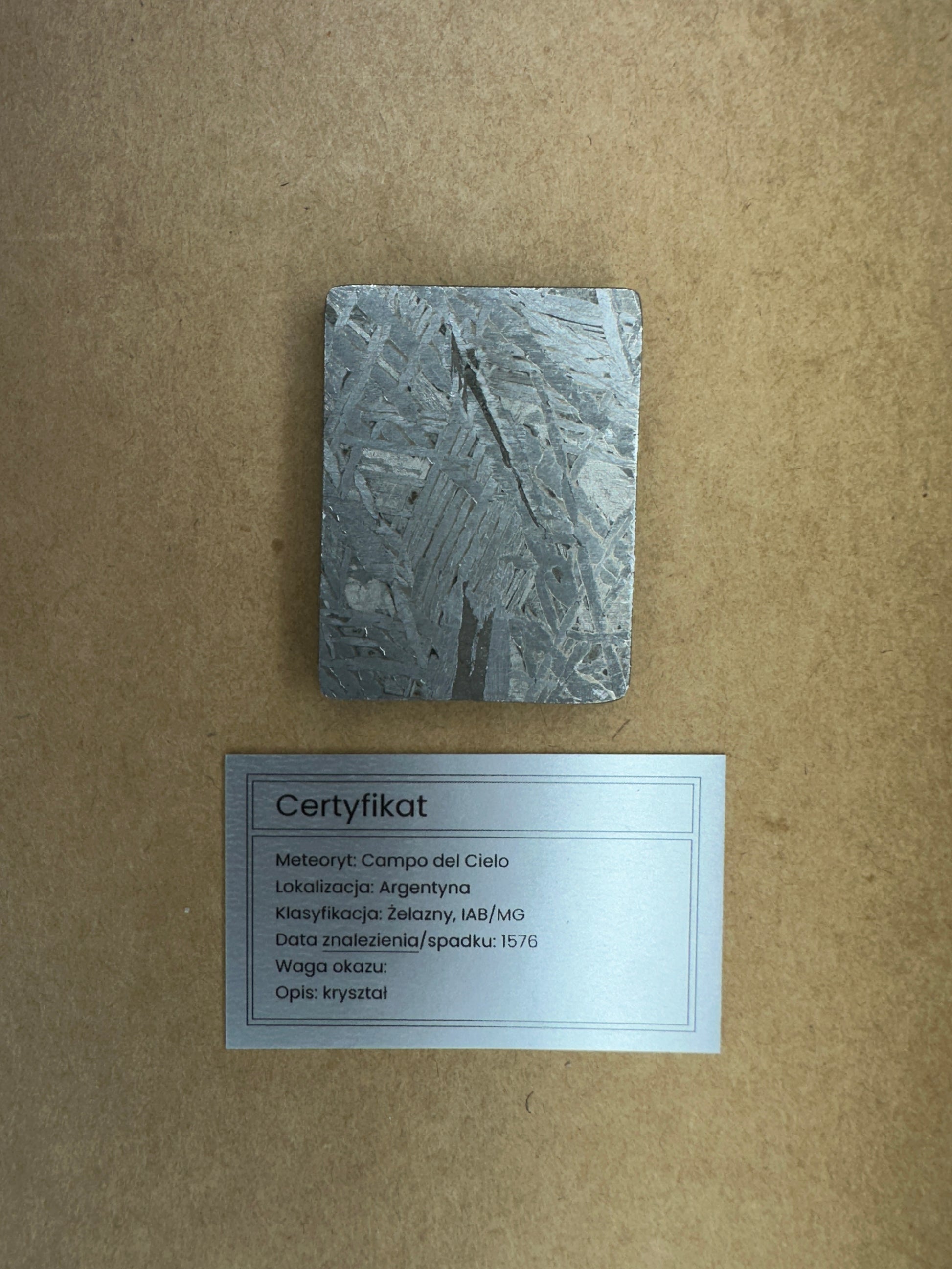 Do każdego meteorytu dołączany jest Certyfikat Autentyczności.