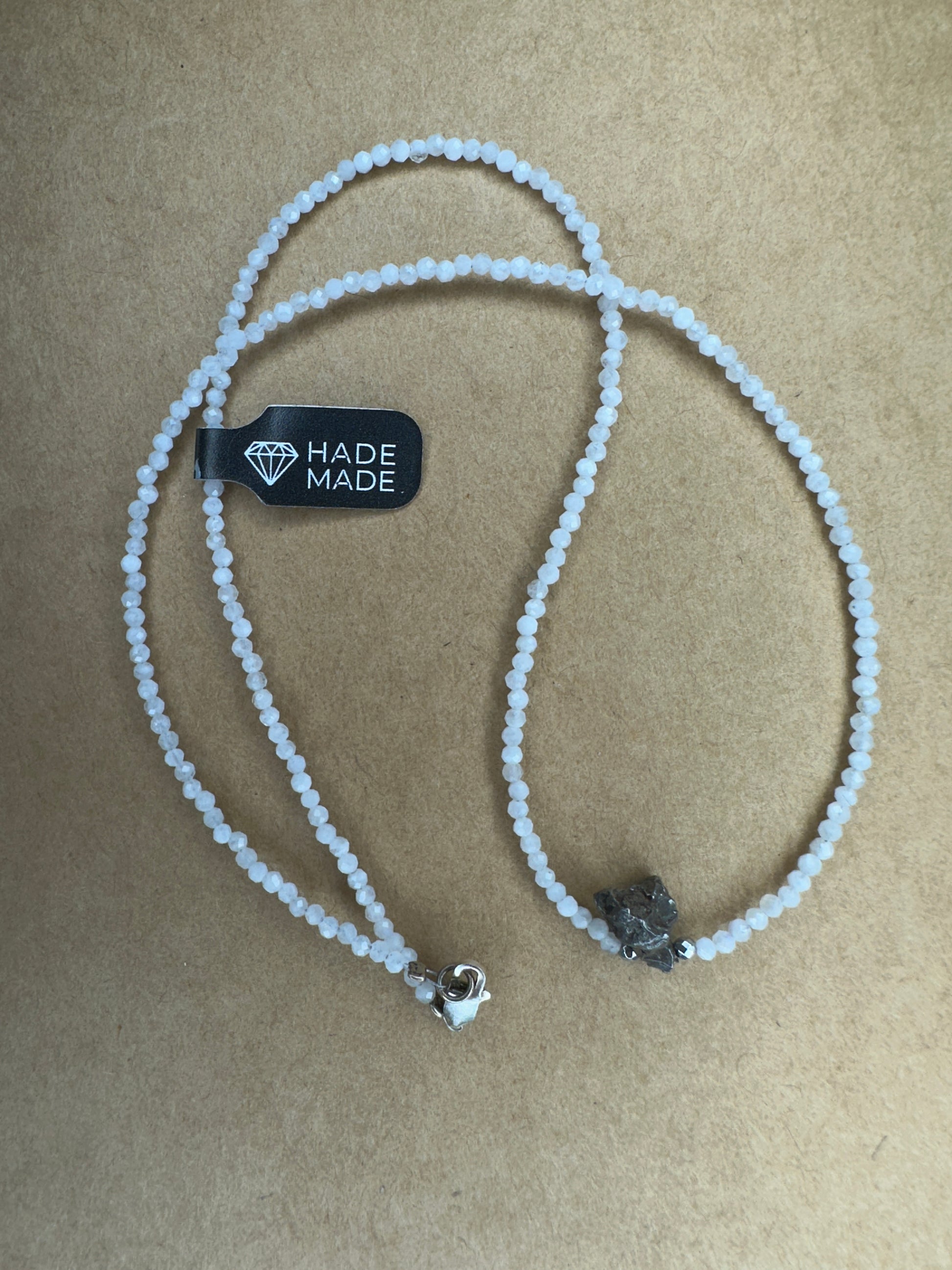 Naszyjnik Srebrny 925 z Kamienia Księżycowego z Meteorytem Campo del Cielo