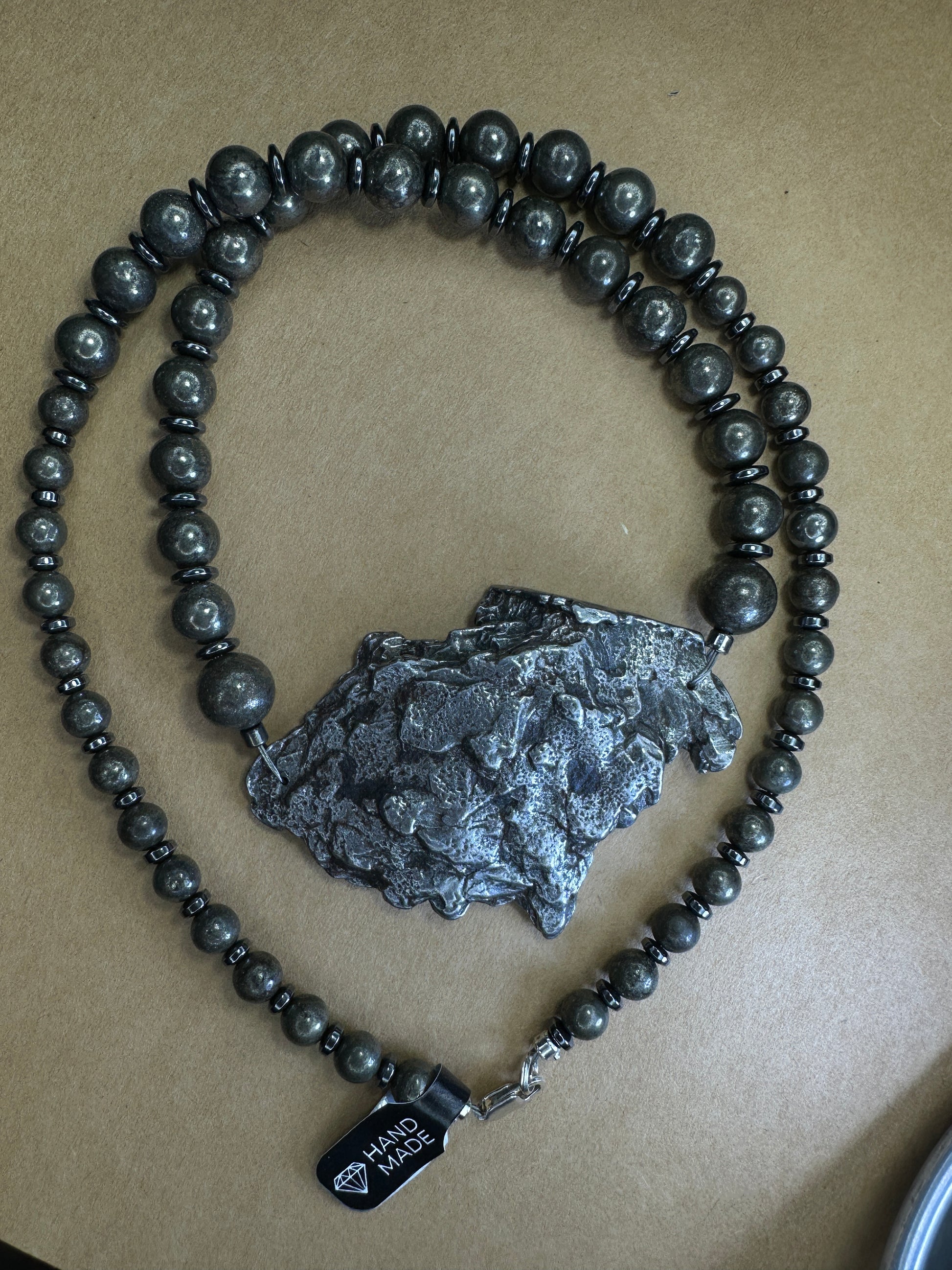 Naszyjnik Srebrny 925 z Pirytu z Meteorytem Campo del Cielo