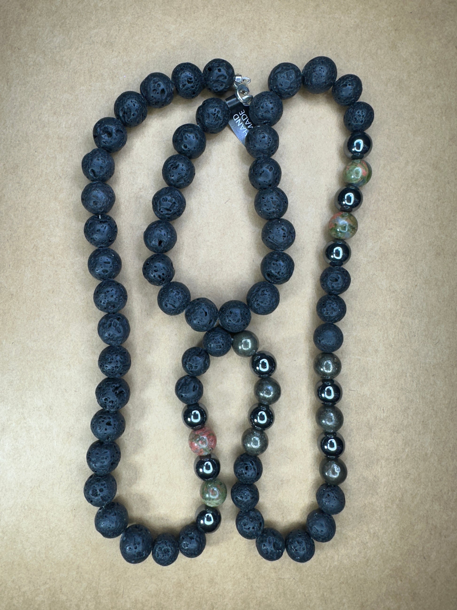 Naszyjnik z Lawy Wulkanicznej, Hematytu i Unakitu