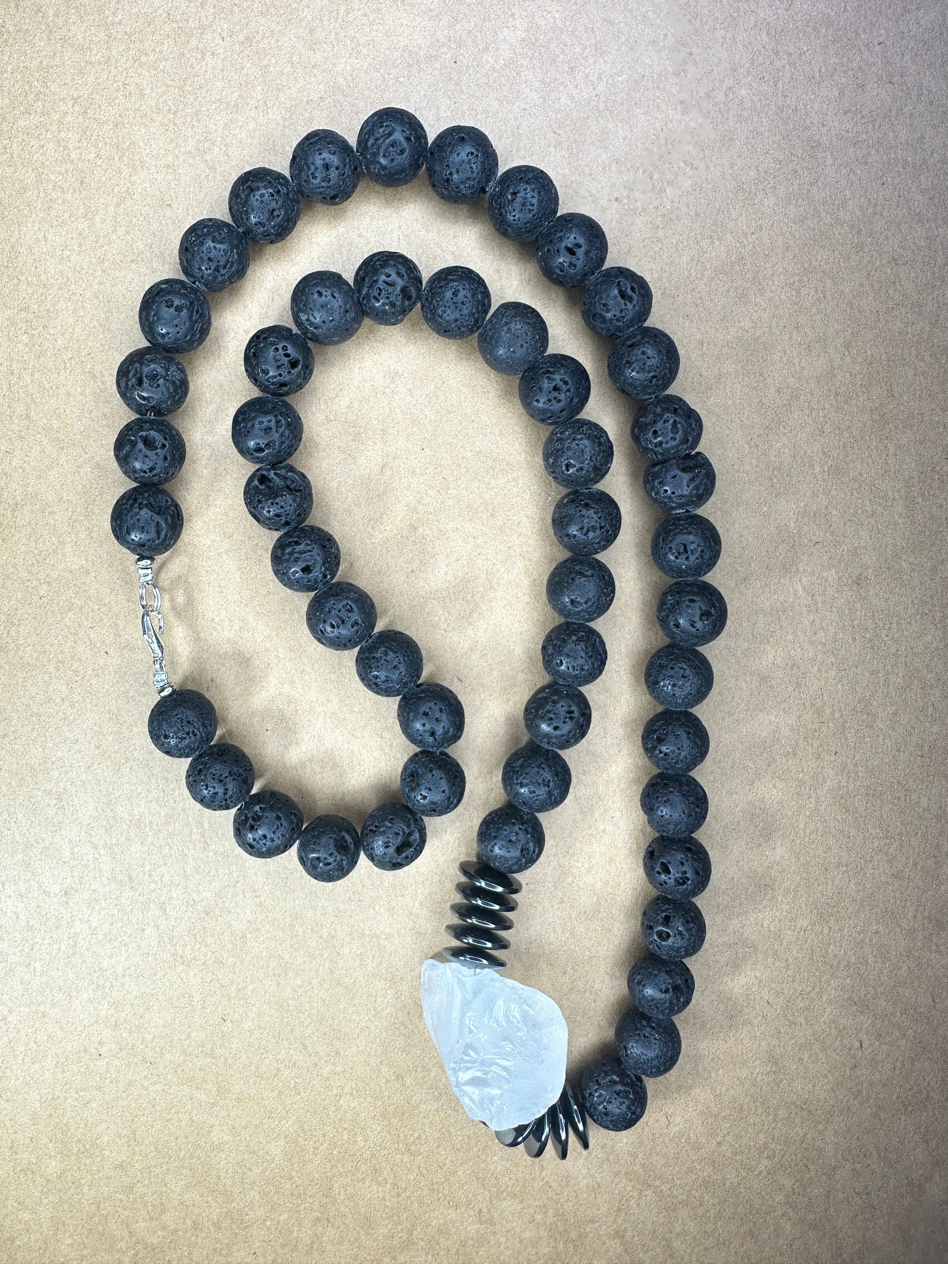 Naszyjnik z Lawy Wulkanicznej, Hematytu oraz Kryształu Górskiego
